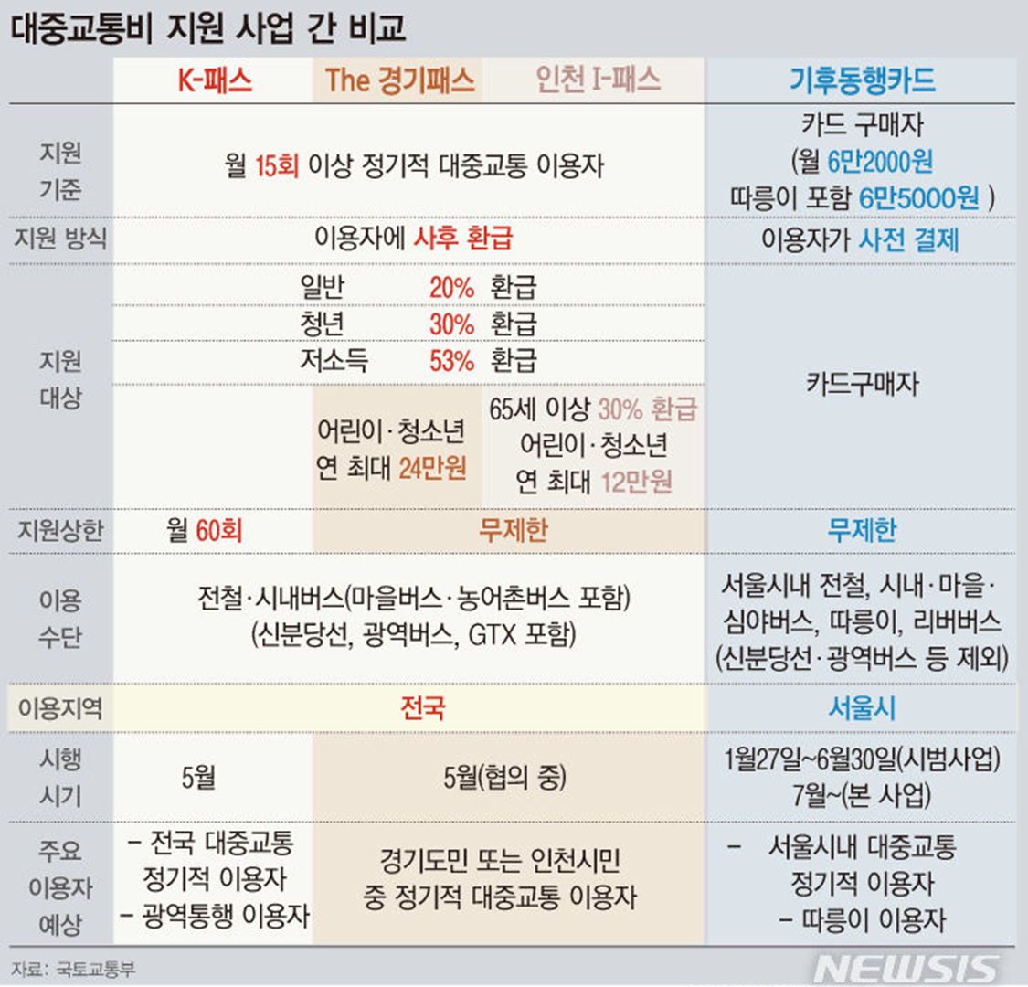 K-Pass와 기후동행카드 비교