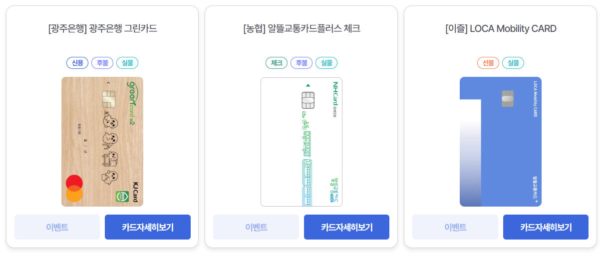기존에 많이 사용하던 알뜰 교통카드(K-pass로 전환 예정)와 이달 27일 출시되는 기후동행카드